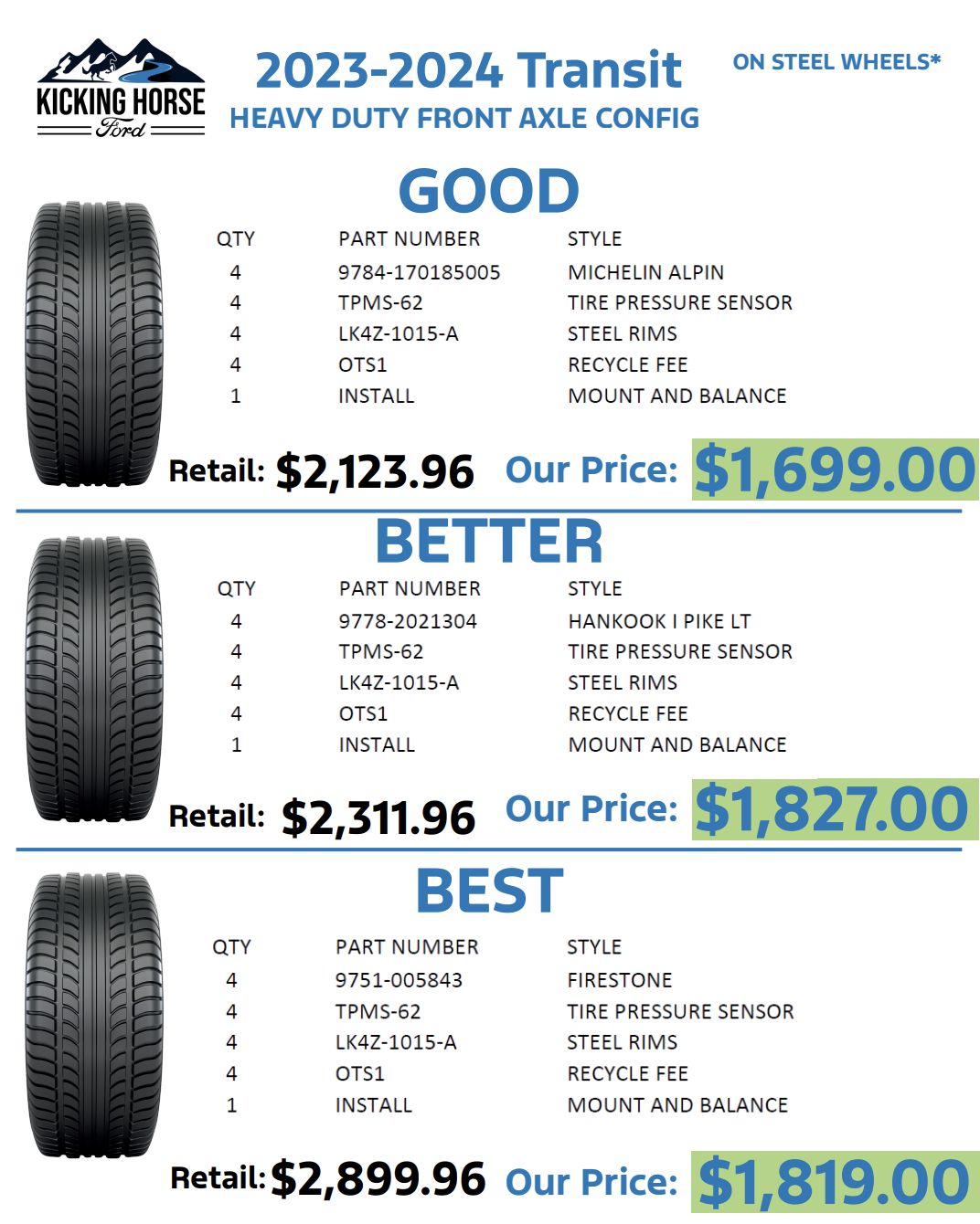 2023-2024 Transit Heavy duty front axel config on steel wheels